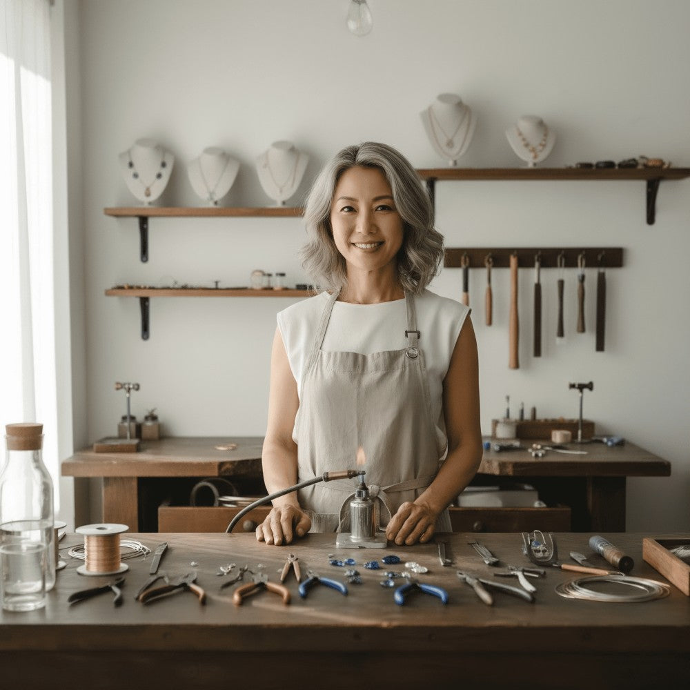 私たちが創り出してきた一つ一つのジュエリーには、私たちの物語が込められています。小さな工房で夜遅くまでデザインを描いた日々、地元のマルシェでお客様と出会えた喜び——すべての瞬間が情熱と愛に導かれてきました。